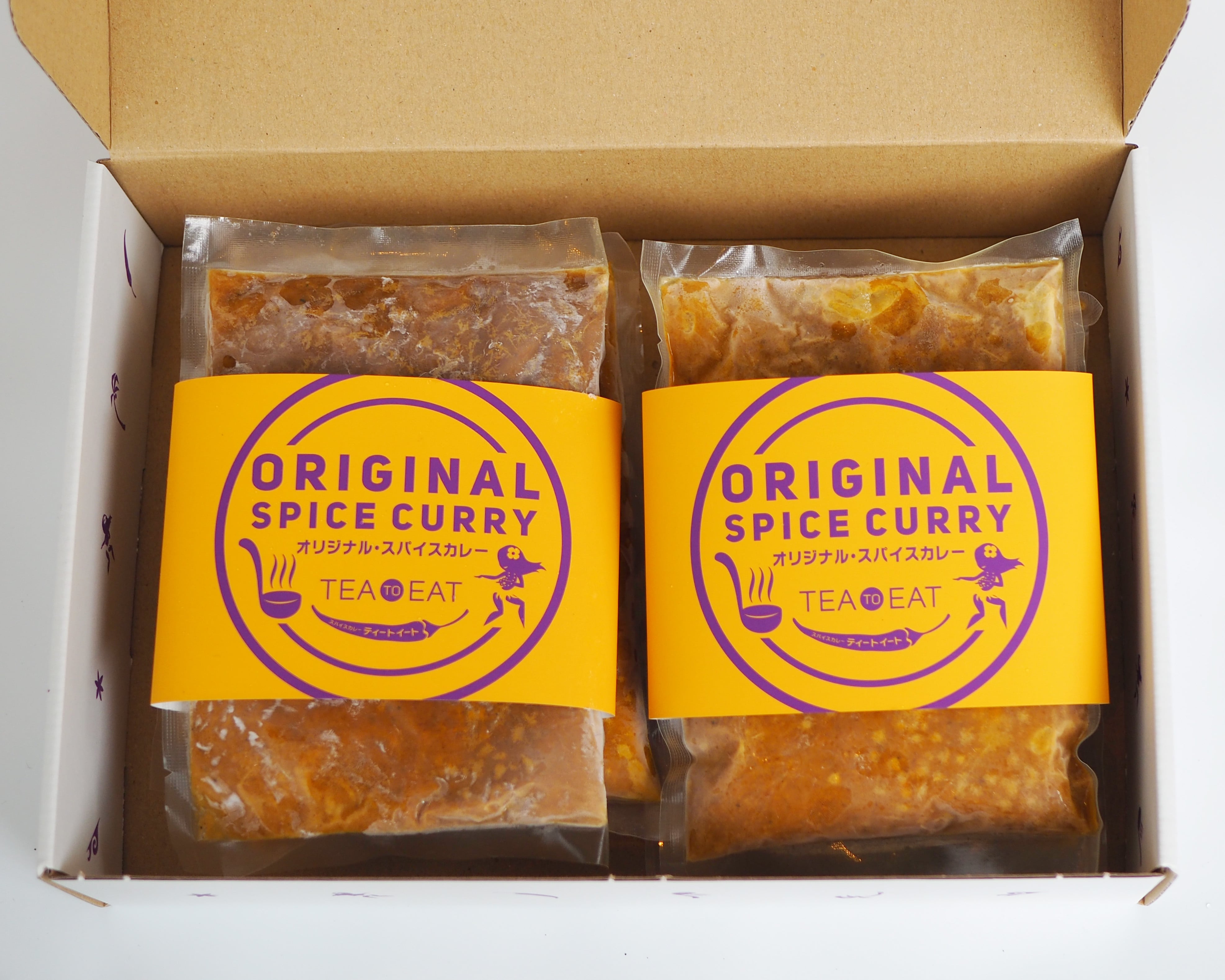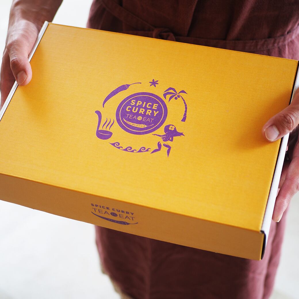 オリジナル・スパイスカレー6個をティートイートオリジナルロゴ入りのギフトボックスにてご用意しました。
