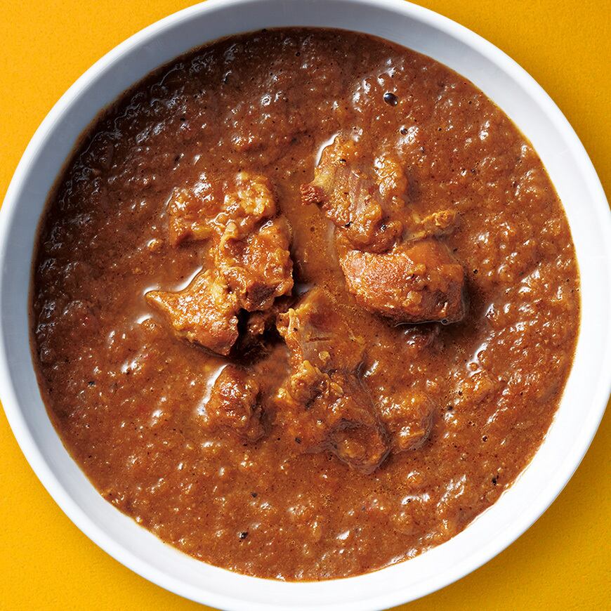 スパイシーで深い味わい野菜・フルーツ・鶏肉から引き出した素材の旨味 に、オリジナルブレンドのスパイスを加えたヘルシーなレシピ。甘み・酸味・コクがバランスしたスパイスカレーの金字塔。