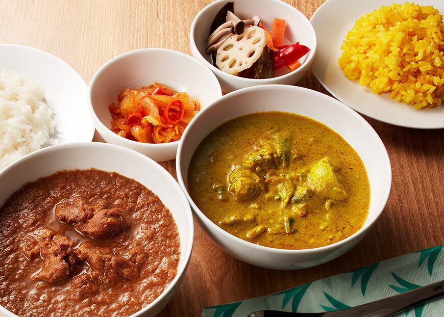 ココナッツのクリーミーさにトマトの酸味と鶏肉・きのこの旨味を加え、コクがあるのにすっきりとした後味の、マイルドタイプのココナッツ・スパイスカレー。